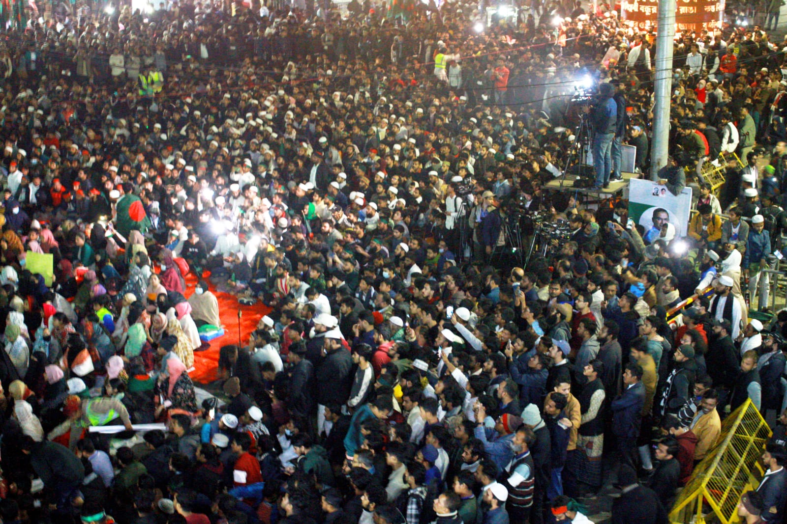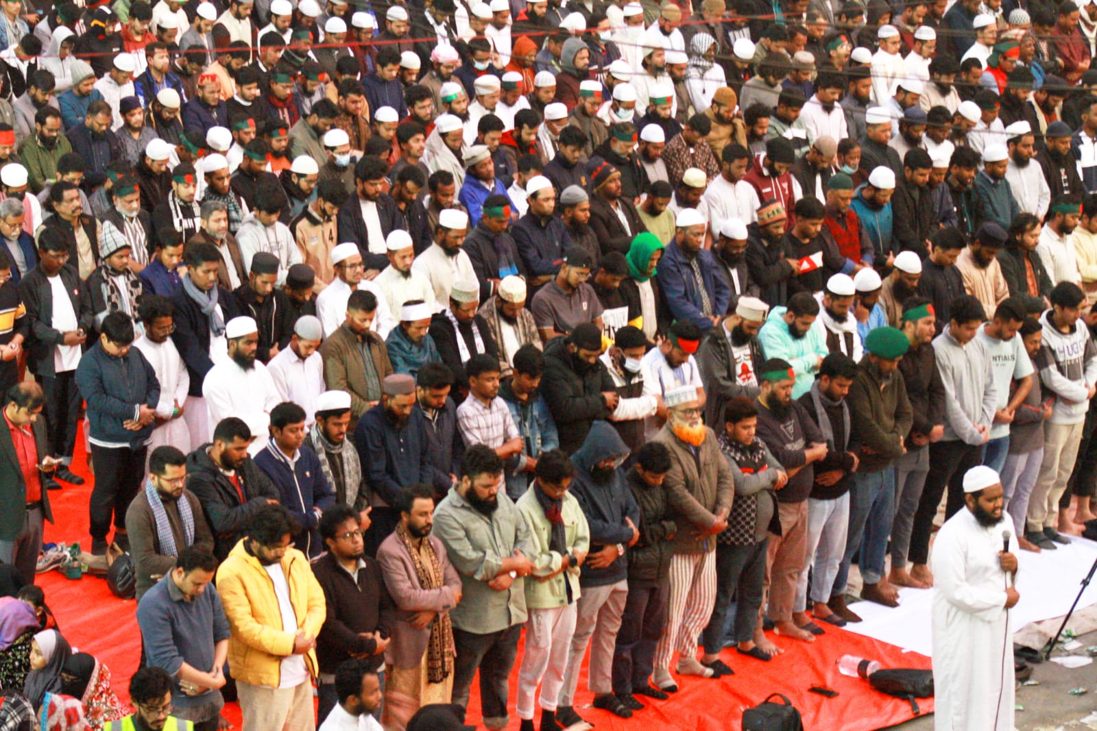 শাহবাগ মোড়ে ওসমান হাদীর বিচারের দাবিতে দ্বিতীয় দিনের মতো ইনকিলাব মঞ্চের বিক্ষোভ; সড়ক অবরোধে বিপুল মানুষের উপস্থিতি। ছবি: ইয়ামিন আহমেদ