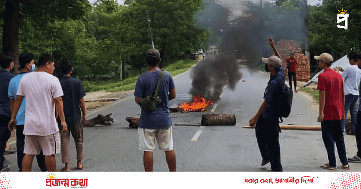 এর আগে এক পাহাড়ি কিশোরীকে দলবদ্ধ ধর্ষণের ঘটনায় জড়িতদের বিচারের দাবিতে ‘জুম্ম-ছাত্র জনতার’ ব্যানারে আজ দিনব্যাপী অবরোধ কর্মসূচি পালন করা হচ্ছিল। এতে খাগড়াছড়ির সঙ্গে সড়কপথে সব ধরনের যোগাযোগ বন্ধ ছিল। বিক্ষুব্ধরা ভোর থেকেই সড়কে টায়ার জ্বালিয়ে ও গাছের গুঁড়ি ফেলে অবরোধ করে রাখেন।