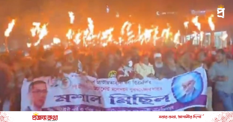 মনোনয়ন পুনর্বিবেচনার দাবিতে টঙ্গীতে ঢাকা–ময়মনসিংহ মহাসড়কে মশাল মিছিল