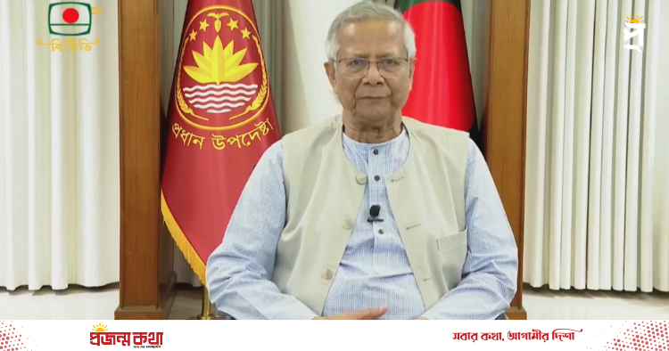 অন্তর্বর্তী সরকারের প্রধান উপদেষ্টা অধ্যাপক মুহাম্মদ ইউনূস জাতির উদ্দেশে ভাষণ দেন। ছবি: বিটিভির ভিডিও থেকে নেওয়া অন্তর্বর্তী সরকারের প্রধান উপদেষ্টা