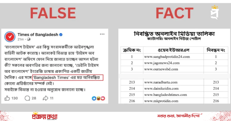 সংবাদকর্মী আটকের ঘটনায় ‘টাইমস অব বাংলাদেশ’-এর পোস্টে বিভ্রান্তি