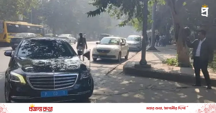 ভারতের পররাষ্ট্র মন্ত্রণালয়ের প্রবেশ করছে বাংলাদেশের হাইকমিশনার এম রিয়াজ হামিদুল্লাহকে বহনকারী গাড়ি। ছবি: সংগৃহীত নয়াদিল্লিতে নিযুক্ত বাংলাদেশের হাইকমিশনার এম রিয়াজ