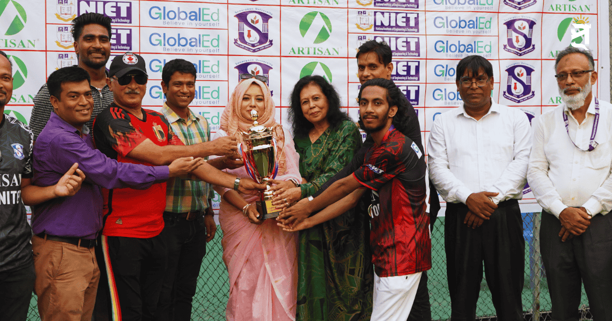 বিজয়ী দল এসইউ ডমিনেটরস হাতে ট্রফি তুলে দেন অতিথিরা | ছবি: প্রজন্ম কথা