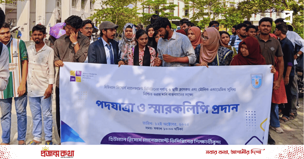 খুবিতে এইচআরএম শিক্ষার্থীদের পদযাত্রা: শ্রেণিকক্ষ সংকট সমাধান চেয়ে স্মারকলিপি