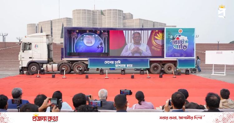 যাত্রা শুরু করলো ভোটের গাড়ি সুপার ক্যারাভান। ছবি: সংগৃহীত আসন্ন ত্রয়োদশ জাতীয় সংসদ নির্বাচন ও গণভোট ২০২৬ উপলক্ষে ভোটারদের