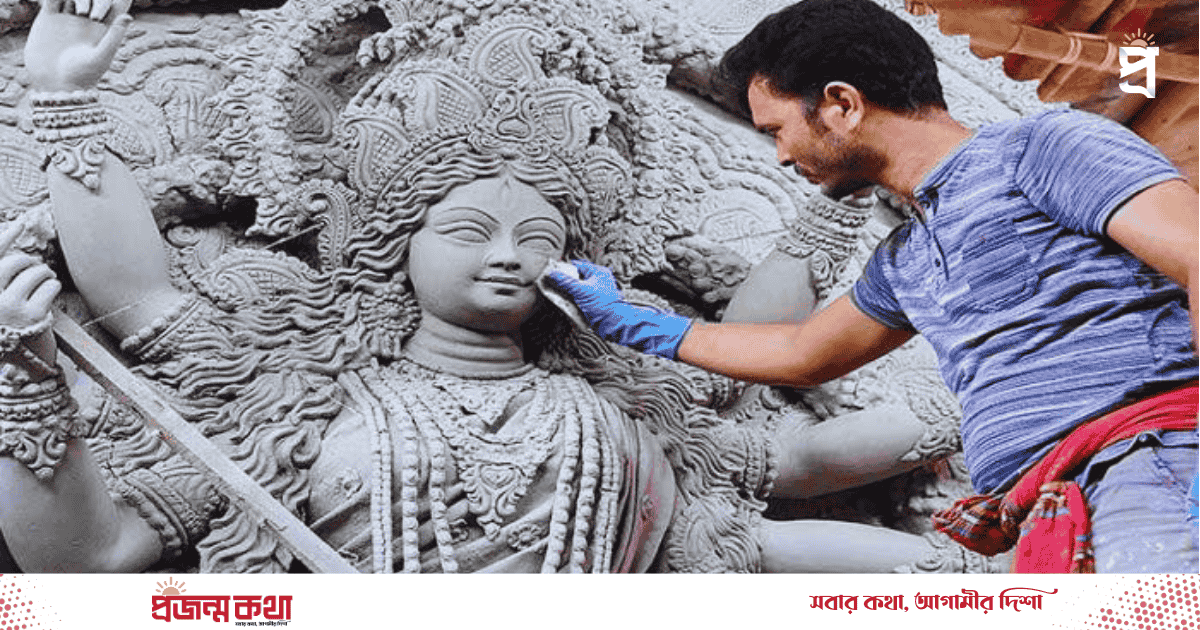 ৫৫টি পূজা মণ্ডপে সাজসজ্জা শেষ, প্রতিমা তৈরির কাজের সঙ্গে জোরদার নিরাপত্তা ব্যবস্থা | ছবি: প্রজন্ম কথা ময়মনসিংহের গৌরীপুর উপজেলায় হিন্দু