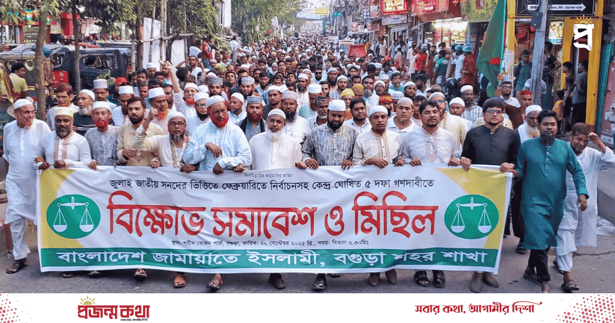 ৫ দফা দাবিতে বগুড়ায় জামায়াতের বিক্ষোভ মিছিল